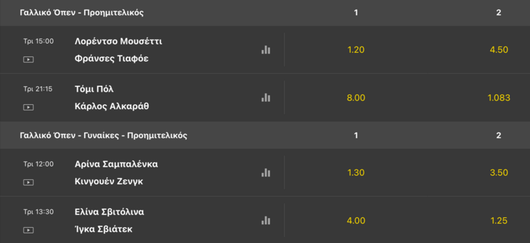 ✅ Αυτοί είναι κάποιοι από τους αγώνες Ρολάν Γκαρός της ημέρας με αποδόσεις bet365:
